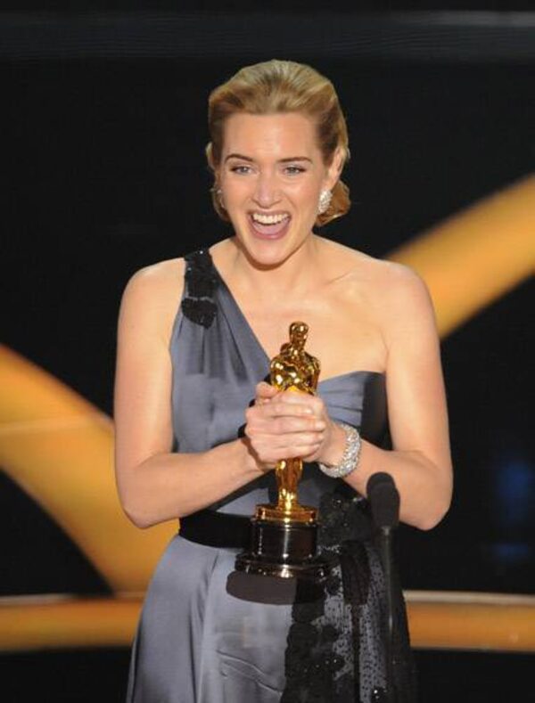 Six-time nominee Kate Winslet finally snagged an Oscar for her role in The Reader. She wore a grey satin and black tulle dress from Yves Saint Laurent.Mark J. Terrill