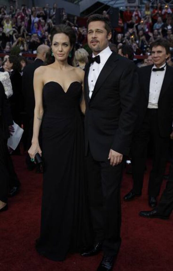 Angelina Jolie accented her Elie Saab gown with Lorraine Schwartz emerald-green drop earrings and a matching ring, while Brad Pitt stayed classic in a Tom Ford tuxedo.Amy Sancetta