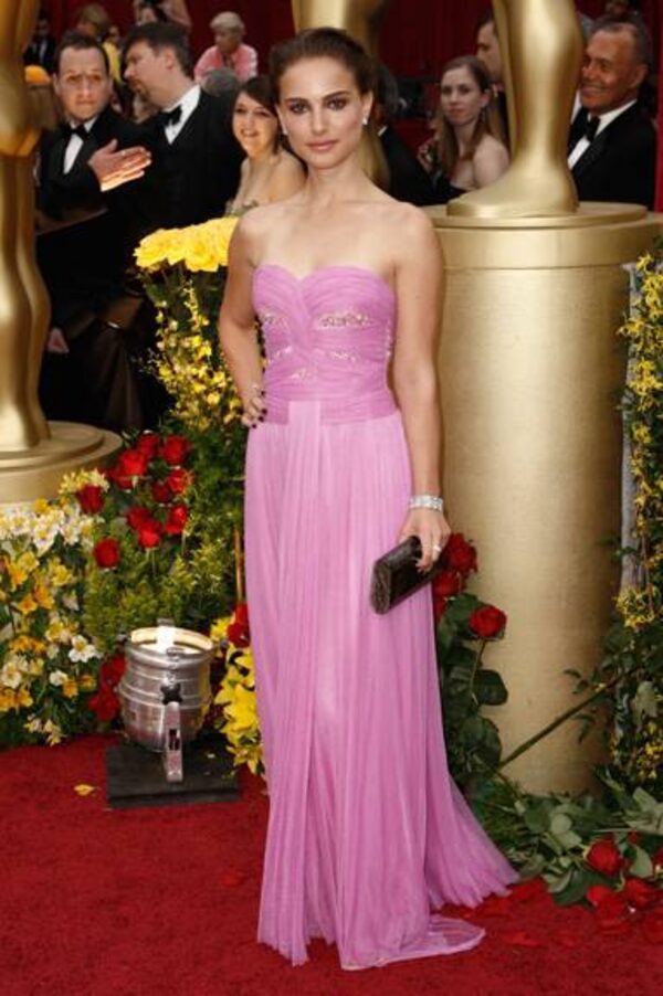 Actress Natalie Portman chose to walk the red carpet in a bright pink, Grecian-inspired Rodarte gown.Matt Sayles