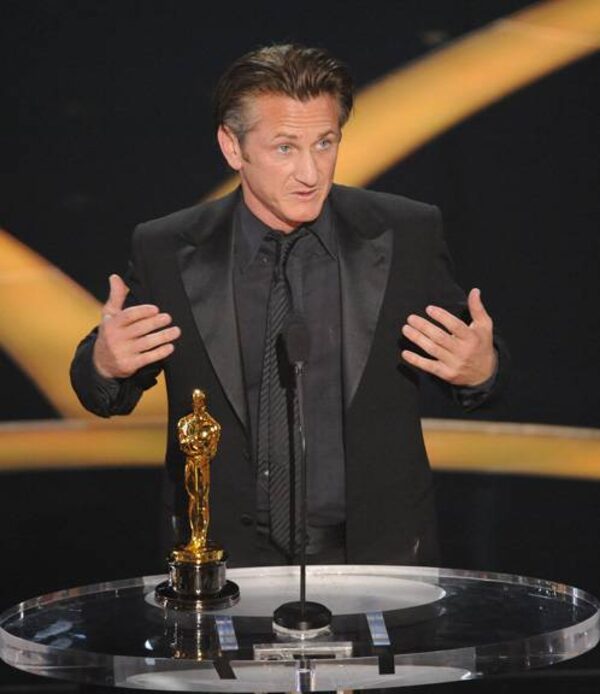 Sean Penn in Armani. He won the best actor award for his portrayal of Harvey Milk in the drama, Milk.Mark J. Terrill