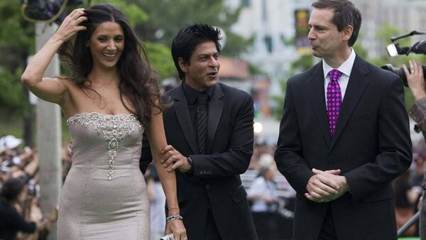 Ontario premier Dalton McGuinty (right) with the former Miss India, Mehr Jessia, and actor Shahrukh Khan on the IIFA green carpet.Darren Calabrese/The Canadian Press