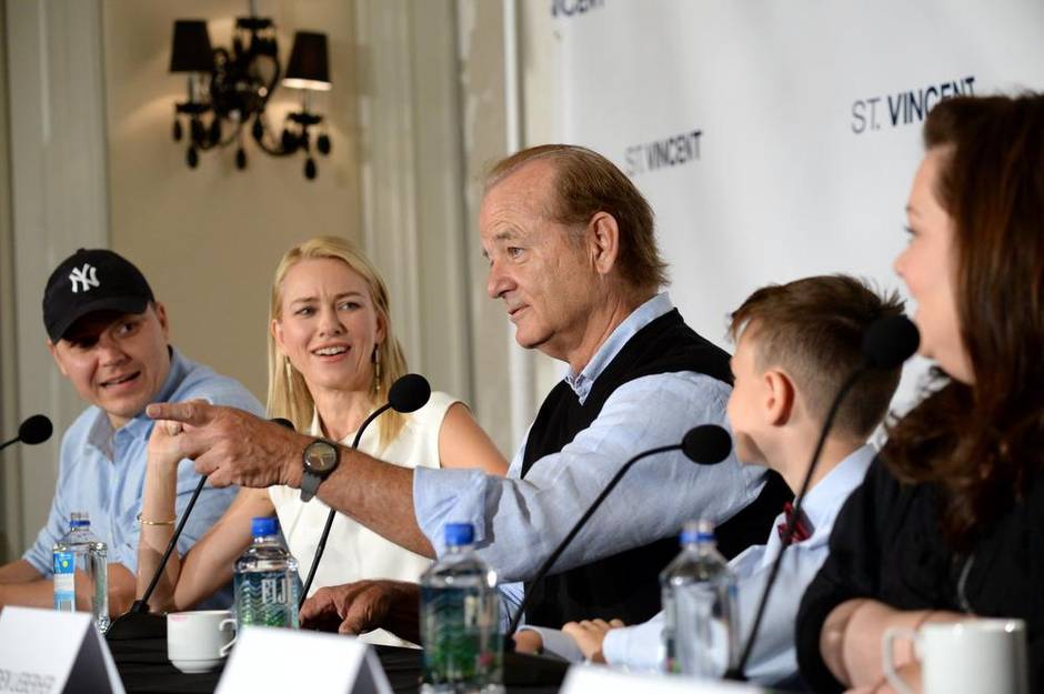 Theodore Melfi, from left, Naomi Watts, Bill Murray, Jaeden Lieberher and Melissa McCarthy attend the press conference for St. Vincent.