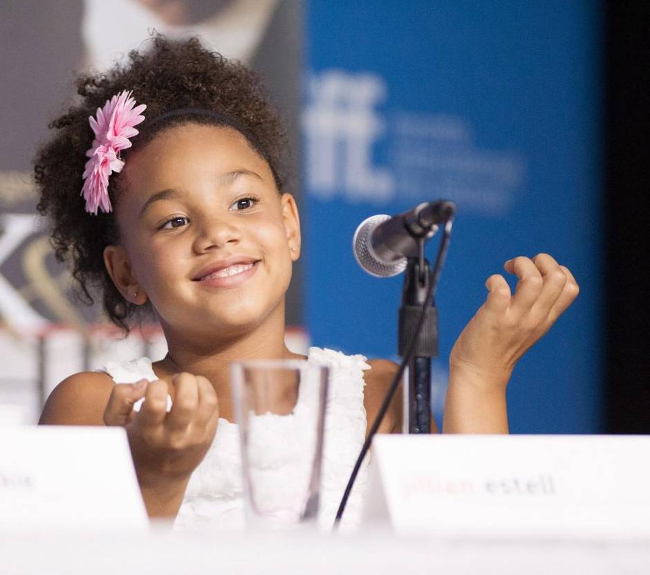 Jillian Estell gestures opening a jar during the press conference for Black and White.