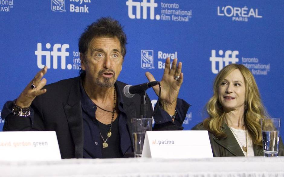 Al Pacino and Holly Hunter attend a press conference for Manglehorn.