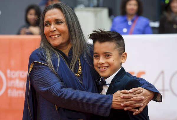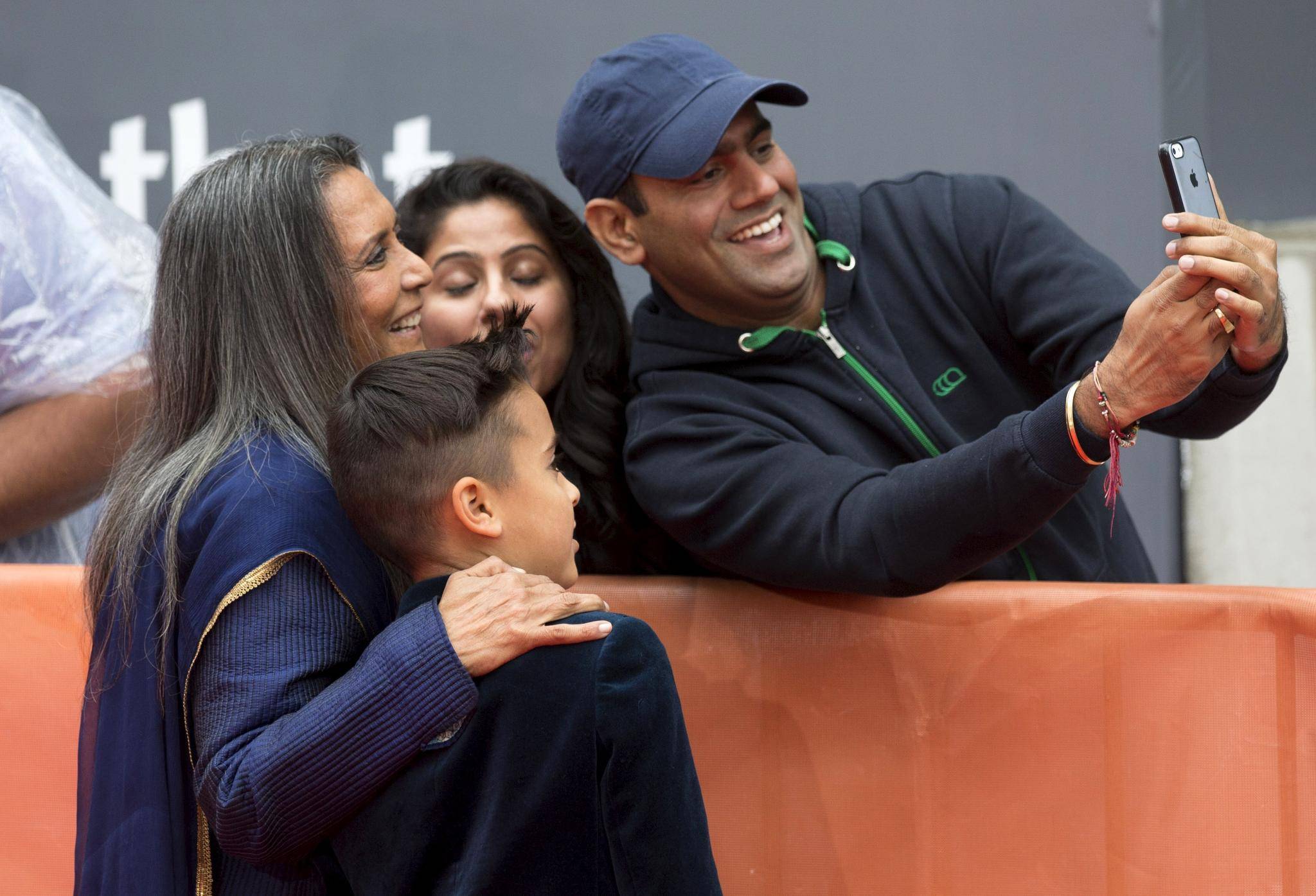 Director Deepa Mehta arrives on the red carpet for the film "Beeba Boys" as she poses for "selfies" with actor Samir Amarshi (front R) during the 40th Toronto International Film Festival in Toronto, Canada, September 13, 2015.MARK BLINCH/Reuters