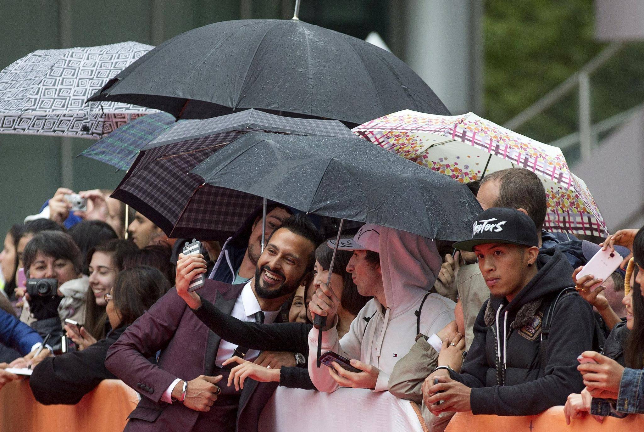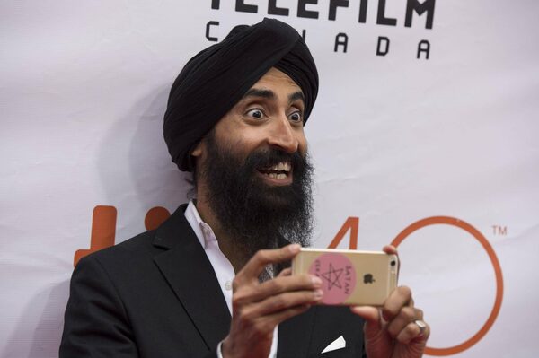 Waris Ahluwalia smiles as he takes photos of photographers on the red carpet at the gala for the film "Beeba Boys," at the 2015 Toronto International Film Festival in Toronto on Sunday, Sept. 13, 2015.Frank Gunn/The Canadian Press