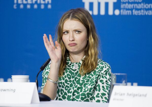 Actress Emily Browning swats at a fly during a press conference promoting the film "Legend" during the 2015 Toronto International Film Festival in Toronto on Sunday, September 13, 2015.Darren Calabrese/The Canadian Press