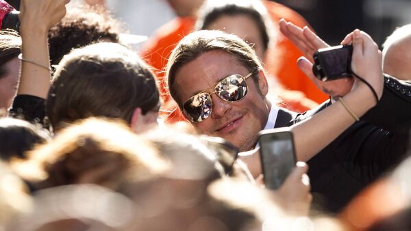 Brad Pitt poses for a photo for fans as he arrives at the red carpet at the gala for the new movie "12 Years a Slave" during the 2013 Toronto International Film Festival in Toronto on Friday, Sept. 6, 2013. The film originally premiered at the smaller Telluride Film Festival in Colorado before moving on to TIFF.Chris Young