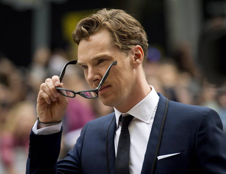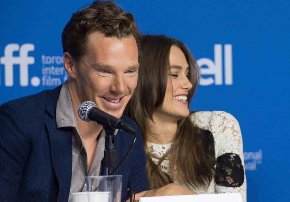 At the premiere of The Imitation Game, star Benedict Cumberbatch poses with fans.