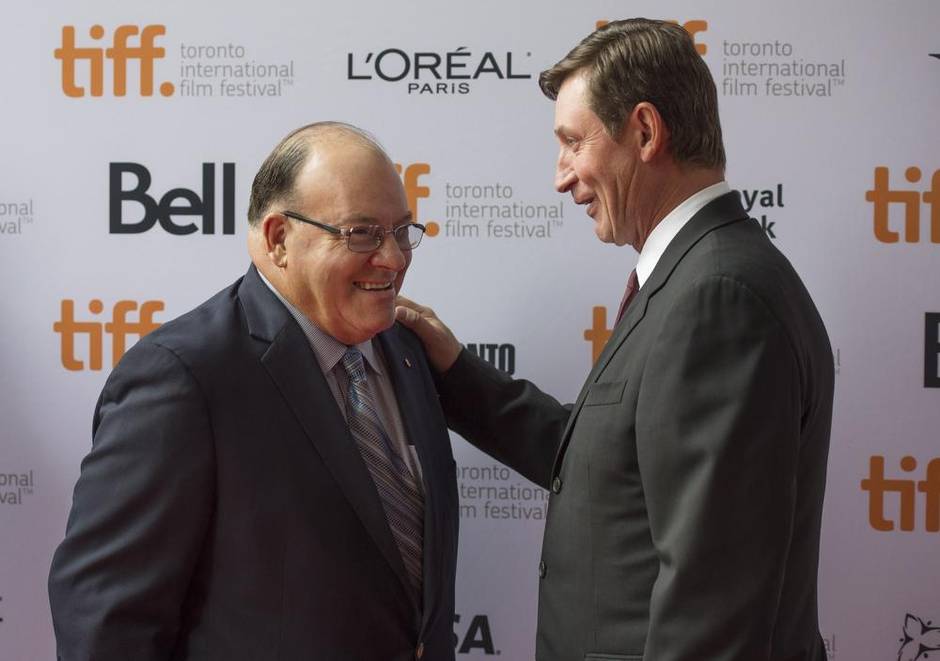 Wayne Gretzky is joined by fellow hockey great Scotty Bowman at the premiere.