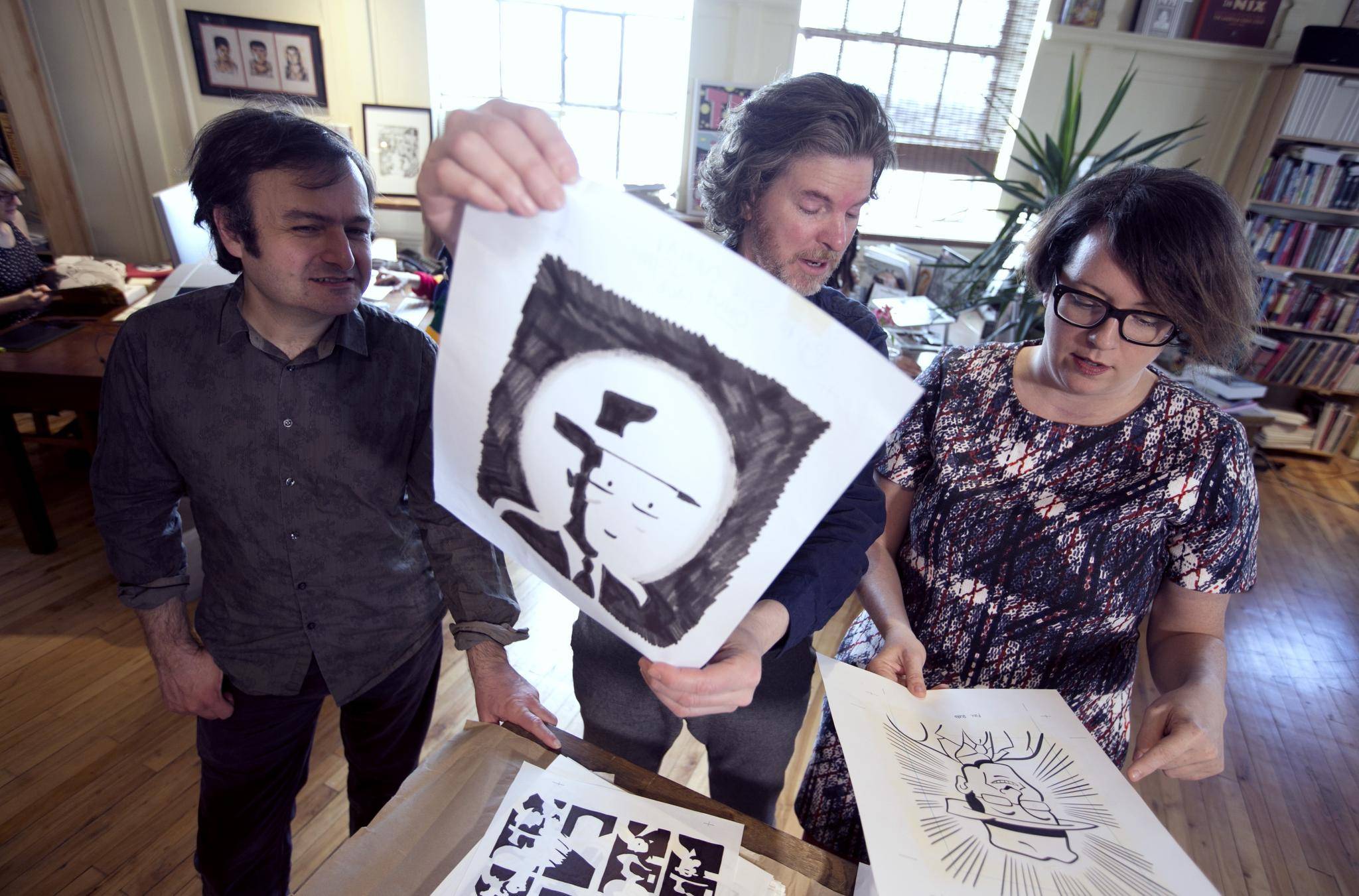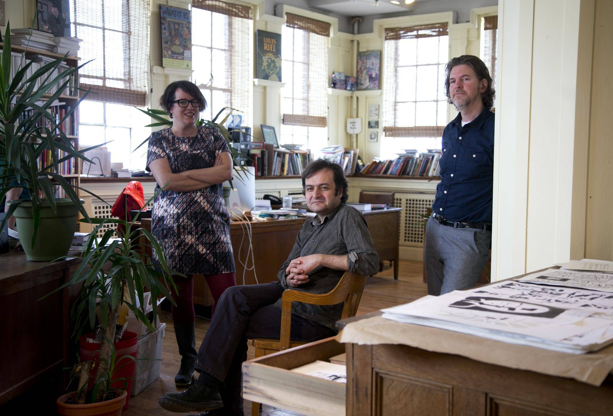 Postponing party planning for later, several members of the D&Q team gather in a corner of their eighth-floor office, next to the railyards in the city’s Mile-Ex neighbourhood, to discuss the future. It’s a small, open-concept space – almost every inch is put to use – and the meeting is held around the closely positioned desks of Oliveros, associate publisher Peggy Burns and creative director Tom Devlin, who are joined by Pohl-Miranda, who started as an intern in 2008, and managing editor Tracy Hurren, who was been with the company for five years. To a visitor it’s a rather charming workspace, crammed full of comics and artwork and mementoes from the past three decades, but the office, carved out of an old warehouse, has its quirks, and the company is moving to larger premises in June.