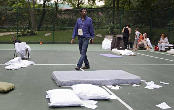 Dany Laferriere on the tennis court at the Hotel Karibe in Port-au-Prince on January 13, 2010.Ivanoh Demers