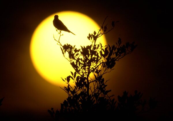 A bird perched high in a tree watches the sun set over western New York, Tuesday, July 20, 2004, in Williamsville, N.Y.ADAM AMATO/The Associated Press