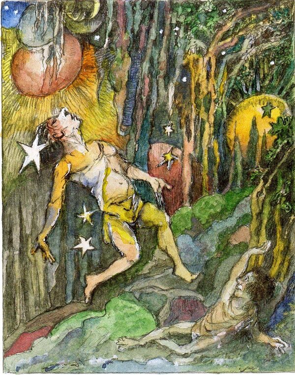The story is no weirder than the illustrated mythologies that Blake produced, the books that inspired Sendak and which, he said, "I hope I don't understand." Its obvious origin is the author's grief over the death of his older brother, his first collaborator in art and life.