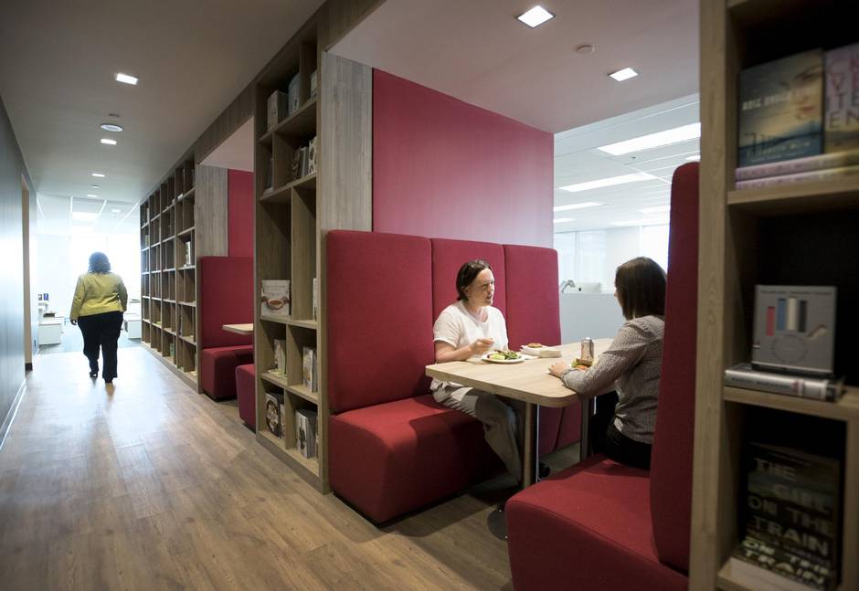If there was one overarching concern among staff in the lead-up to the move – a concern confirmed by internal surveys conducted by a firm hired to help manage the move – it was the switch to open concept, which Cochrane admits was a “bold decision.” No one – not Martin, not Cochrane, not a single editor or publisher, no matter their seniority – has an office, though there are 35 meeting and “phone” rooms scattered throughout the three floors. The decision is part of a mini-trend in the publishing industry; Hachette’s New York operations switched to open concept when they moved into their new office last October, following the lead of several British publishers, including Penguin U.K.