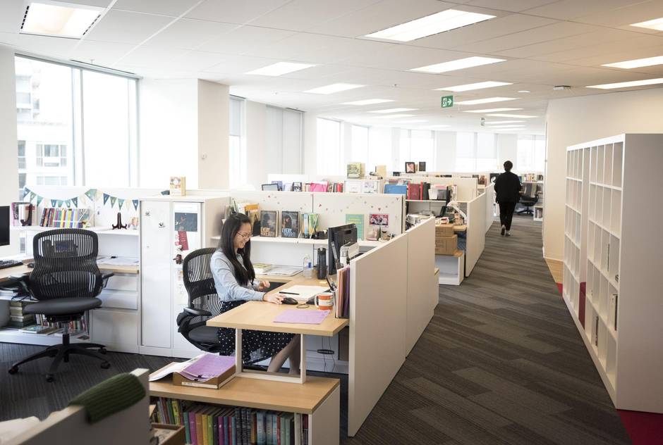 Unlike the drab Penguin Canada offices, and the rather cramped Random House offices, the new space is airy and aesthically pleasant, if nothing else. It occupies 53,500 square feet and three floors, with a (still under construction) winding staircase linking the 12th and 14th floors. Almost every employee has a seat near a window, which, walking around the perimeter, offers a 360-degree view of the city. During my first visit, I asked one publicist how they were finding it. They gushed about it being “bright and beautiful” before leaning close to whisper: “But it’s open concept.”