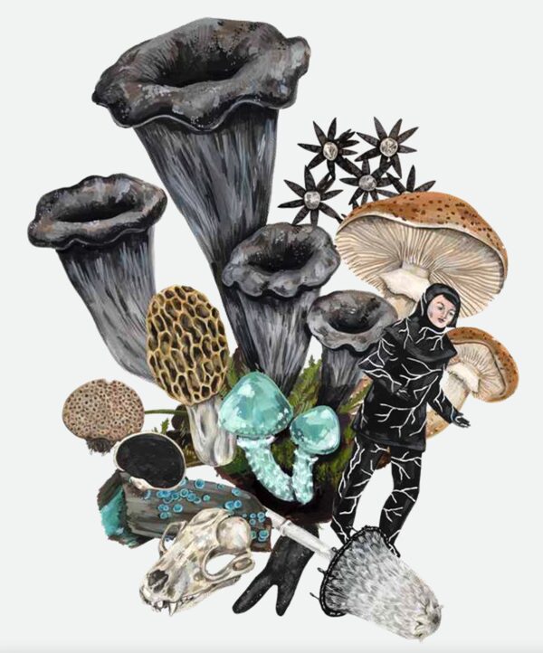 “It’s not straight science,” Borsato says. “I was interested in the aesthetics and culture around mushrooms, and making a guide that was contemporary and feminist – and reflecting on some of the crucial discourses we’re having right now around our relationships with nature and the environment and land.”