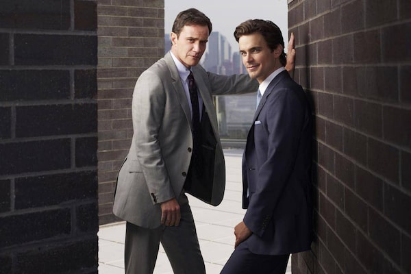 FBI agent Peter Burke (Tim DeKay) and Neal Caffrey (Matt Bomber) in White Collar. The show tells the story of a con man released from prison into the custody of a white-collar crime division FBI agent.Bravo