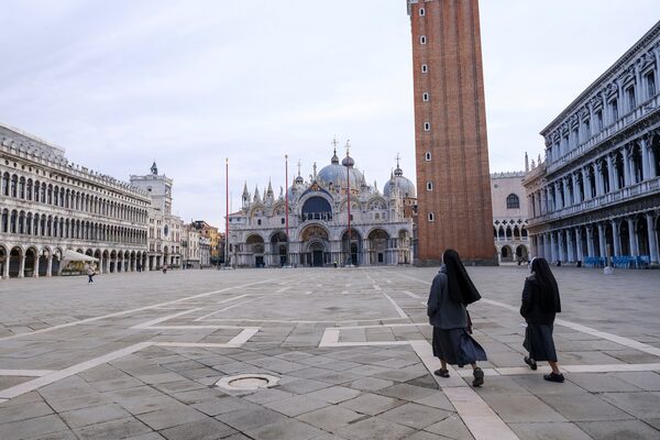 Two nuns walk through St. Mark's Square as the Italian region of Veneto goes into lockdown on March 15, 2021.MANUEL SILVESTRI/Reuters