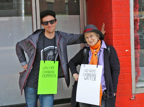 The crack of inauthenticity in his project, of course, is that he wanted to be famous for disdaining fame. “The irony is that Crad, although playing the role of the perennial outsider, wanted to be an insider, too,” Stechyson says. The attention span of passersby in the street is too flickering to fuel the long-distance goals of a writer, and their callousness defeated even the iron-hearted satirist. Atwood – one of the most famous and successful writers in the world – agreed to appear in Stechyson’s movie, gamely wearing a placard and trying to sell her books on Bloor Street in Toronto in June, 2017. “She stood there for an hour, wearing a sign that said ‘No-Name Canadian Writer,’ and no one knew who she was,” Stechyson says. A young woman finally recognized her, but said she’d borrow her books from the library. “It’s always chancy doing a thing like that,” Atwood said, “because people just think you’re slightly crazy.”