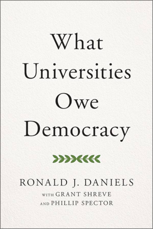 The university as a place of promise and peril emerges clearly in Ron Daniels’ What Universities Owe Democracy. Alarmed by the attempted January 6, 2021 coup in the United States and armed with international surveys showing declines in democracies’ political health, Daniels, the president of Johns Hopkins University (and a Canadian), advances the most forceful argument for universities as change-makers. Noting universities’ resistance to discriminatory visa rules for foreign scientists (which saw some find new posts in Canada), and his own university’s support of undocumented students, Daniels wants the American university and its graduates to find more ways to challenge power.