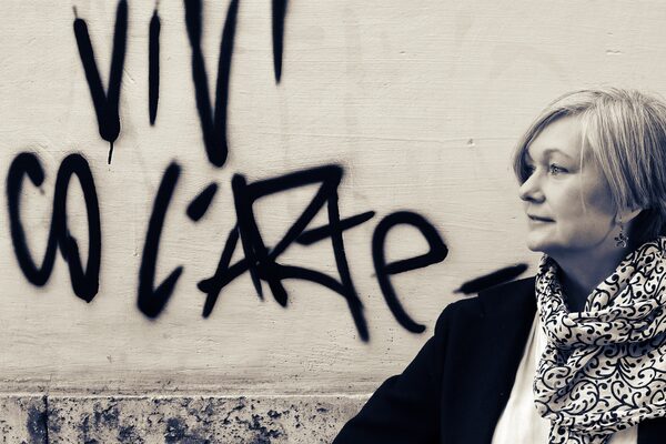 Her 21st-century experience, by contrast, is anchored by her book’s photographs from Douglas Anthony Cooper, provocative images of contemporary Rome where ancient streets and historic buildings provide a backdrop for graffiti, buskers and heedless passersby.