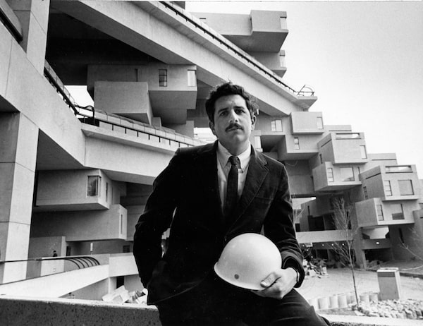 Architect Moshe Safdie sits in front of Habitat 67, one of the exhibits at Expo '67 in Montreal, on April 21, 1967.The Canadian Press