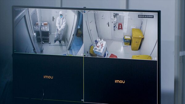 Security footage monitors a doctor as he removes his protective equipment.Courtesy of Ai Weiwei Studio