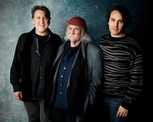 From left: producer Cameron Crowe, David Crosby and director A.J. Eaton. The film includes the Crosby's candid reflections on his career, relationships and feuds.Taylor Jewell/The Associated Press