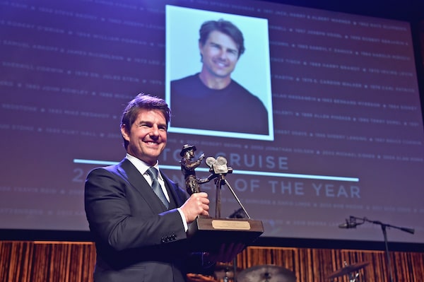 Tom Cruise onstage during the 2018 Will Rogers Pioneer of the Year Dinner during CinemaCon.Alberto E. Rodriguez/Getty Images for CinemaCon