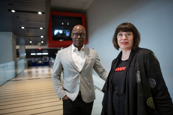 Cameron Bailey, left, CEO of the Toronto International Film Festival (TIFF), and Celia Smith, CEO of Luminato Festival Toronto, stand in the TIFF Lightbox theatre on May 6.Fred Lum/The Globe and Mail