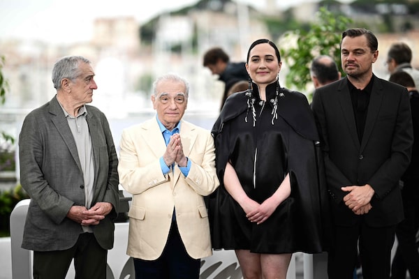 Robert de Niro, Martin Scorsese, Lily Gladstone and Leonardo Dicaprio at a photocall for the film Killers of the Flower Moon, at the 76th edition of the Cannes Film Festival in Cannes, southern France, on May 21.LOIC VENANCE/AFP/Getty Images