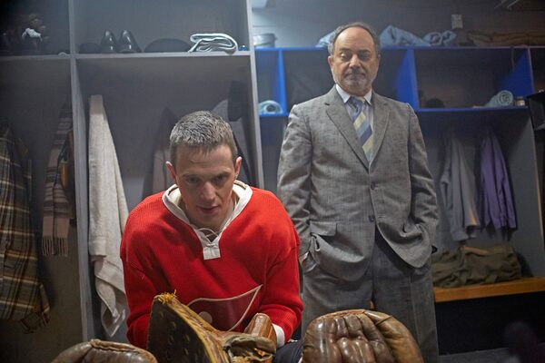 Mark O'Brien, left, plays troubled NHL goalie Terry Sawchuk in the biopic Goalie.Courtesy of Mongrel