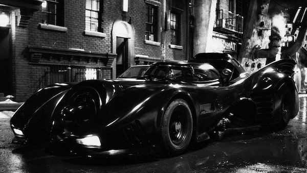 Sleek and powerful Batmobile in the 1992 film Batman Returns, starring Michael Keaton.