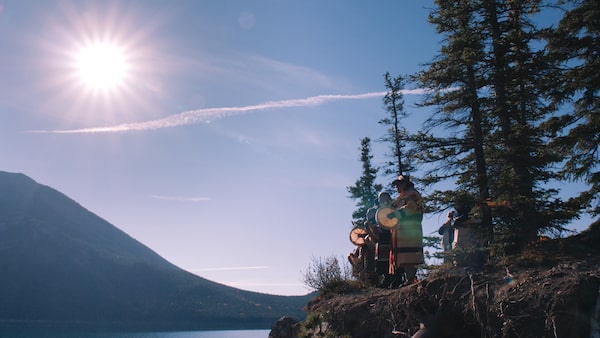 Another staggering moment takes place when Hubbard accompanies four other Indigenous women to Banff, where two of them, Kyra Northwest and Glenda Abbott, are said to have sung buffalo ceremony songs during their hike. A monitoring system reveals that these songs – which the film’s title refers to – summoned the buffalo closer as they were being sung. But in place of any image or audio, a black screen reveals that these songs “cannot be recorded.”