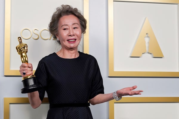 Yuh-Jung Youn, winner of the award for best actress in a supporting role for Minari, poses in the press room at the Oscars on April 25, 2021.POOL/The Associated Press