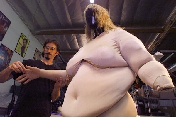 Make-up artist Tony Gardner makes an adjustment to a fat suit he created for actress Gweneth Paltrow's character, a 300-pound woman, in the new comedy Shallow Hal, on Nov. 2, 2001, in his Baldwin Park, Calif., studio.DAMIAN DOVARGANES/The Associated Press