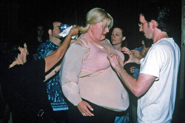 Director Bobby Farrelly on the set of Shallow Hal with Gwyneth Paltrow, who is dressed in a fat-suit.20th Century Fox