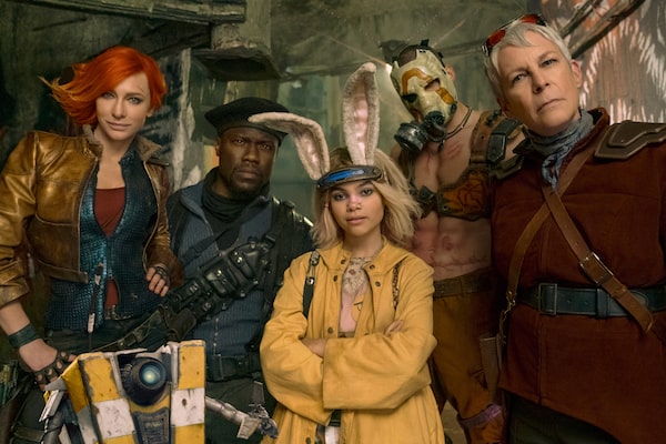 Fom left, Cate Blanchett, Kevin Hart, Ariana Greenblatt, Florian Munteanu and Jamie Lee Curtis in Borderlands.Katalin Vermes/The Associated Press