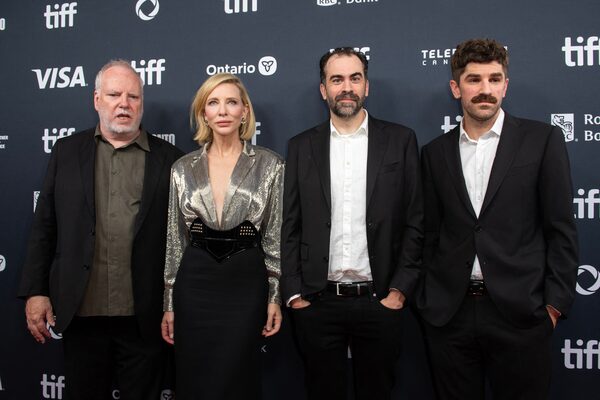 From left, Canadian filmmaker Guy Maddin, Australian actress Cate Blanchett, Canadian filmmaker Galen Johnson and Evan Johnson attend the North American premiere of Rumours at the Royal Alexandra theatre during the Toronto International Film Festival on Sept. 7.VALERIE MACON/AFP/Getty Images