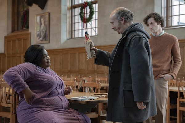 From the left: Da'Vine Joy Randolph, Paul Giamatti and Dominic Sessa in a scene from The Holdovers.Seacia Pavao/The Associated Press