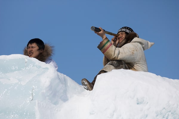Mallik (Jacky Qrunnut) and Japati (Gouchrard Uttak) see Boss's dogteam coming.Levi Uttak/© Isuma Distribution International