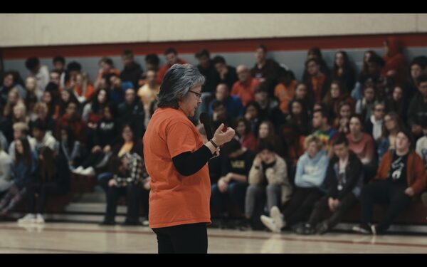 Stiller’s debut feature documentary, Returning Home, tells the story of Phyllis Jack-Webstad. She was 6 when she was sent to St. Joseph’s Mission Residential School. Her grandmother wanted to give her something special to wear. Phyllis chose a shiny orange shirt, but when she got to the school, she explains in the film, she was stripped and the shirt was taken away. “So I wear it today as a symbol of the healing that’s taking place,” says the founder of the Orange Shirt Society, in the film.