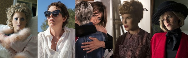 This combination of photos shows the Best Actress Oscar nominees: from left, Jessica Chastain in The Eyes of Tammy Faye, Olivia Colman in The Lost Daughter, Penélope Cruz in Parallel Mothers, Nicole Kidman in Being the Ricardos, and Kristen Stewart in Spencer.Searchlight/Netflix/Sony Pictures Classics/Amazon/Neon via AP