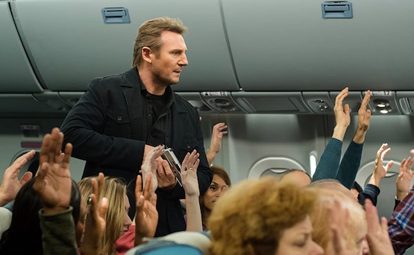Liam Neeson as Bill Marks in Non-Stop (2014). An air marshal springs into action during a transatlantic flight after receiving a series of text messages demanding $150 million into an off-shore account, or someone will die every 20 minutes.Myles Aronowitz/Universal Pictures