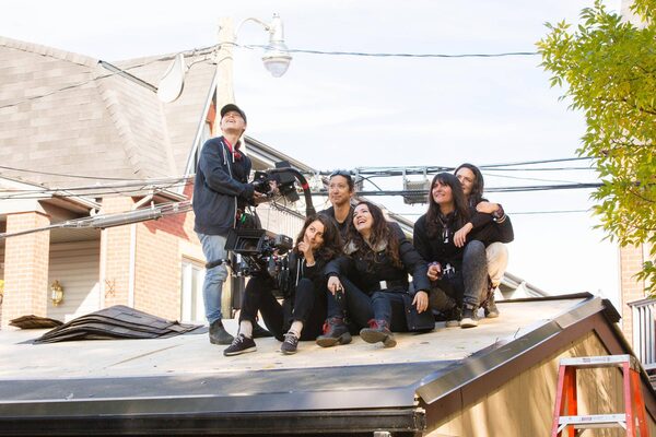 Crew members Cheryl Sileikis, Maya Bankovic, Cait Lusk, April Mullen, Stephanie Fabrizi and Faye Mullen are photographed on the set of Below Her Mouth, an indie film due for release in 2016.Erin Simkin