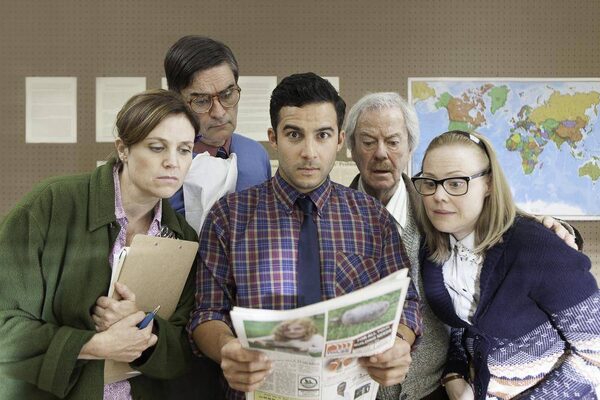 Gordon Pinsent, centre, plays the fictional Weekly Ledger’s publisher in Big News from Grand Rock.