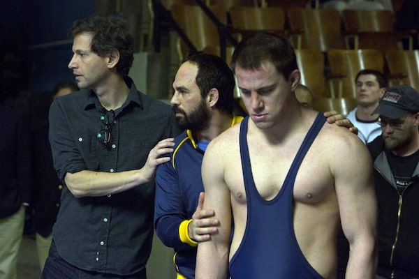 Director Bennett Miller, left, and stars Mark Ruffalo and Channing Tatum, who play wrestlers Dave and Mark Schultz.Scott Garfield