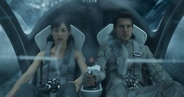 Olga Kurylenko and Tom Cruise in Oblivion.