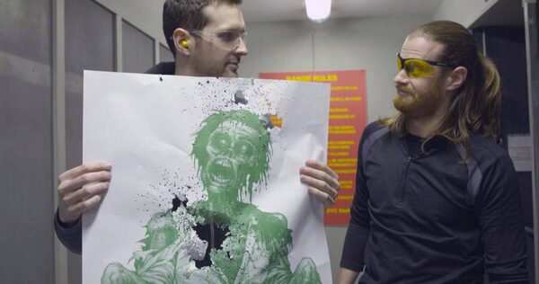 In Fake Blood, a pair of schlock-gore specialists become intrigued with the repercussions of their craft: Are the celluloid portrayals of brutal deaths accurate? Do violent films inspire violence? Did The Texas Chain Saw Massacre drive up business in the local hardware stores? The pair decide to make a serious documentary on the subject, which involves them hooking up with a heavily felonious dude for research. Not to give away the plot, but things get a little too real for comfort.